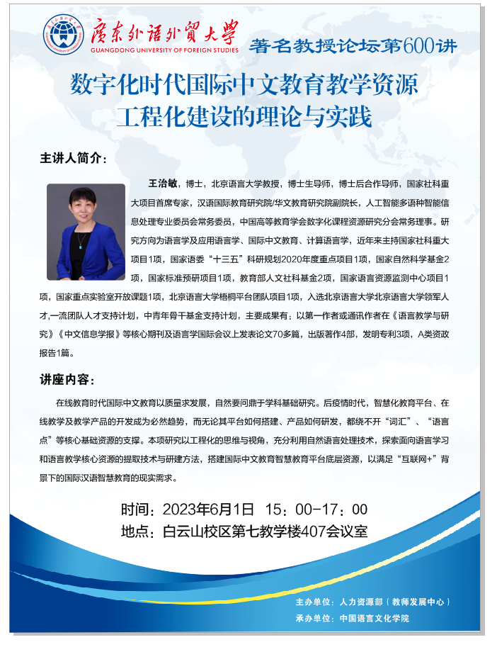 著名教授論壇第600講:數(shù)字化賦能課堂教學(xué)——國(guó)際中文教育教學(xué)資源工程化建設(shè)新思路