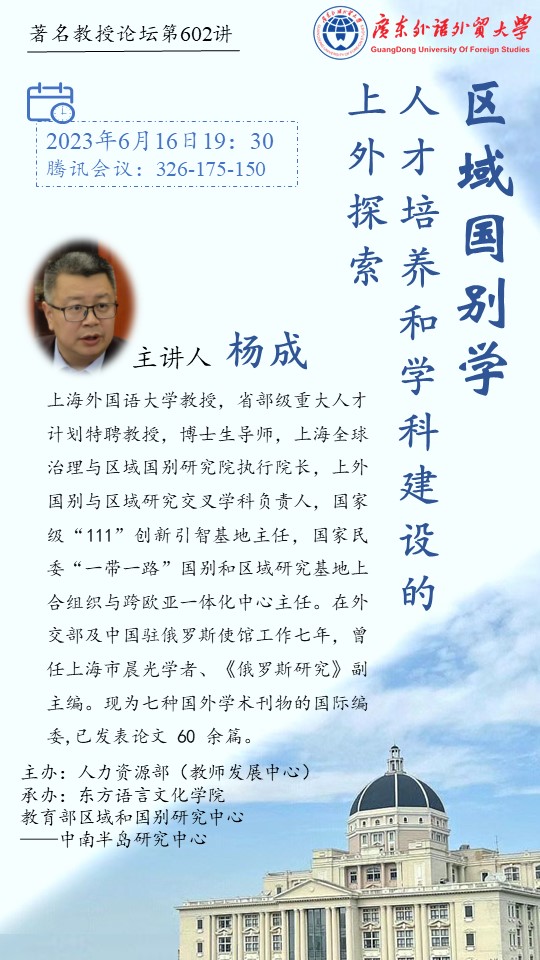 著名教授論壇第602講:區域國別學人才培養和學科建設的上外探索