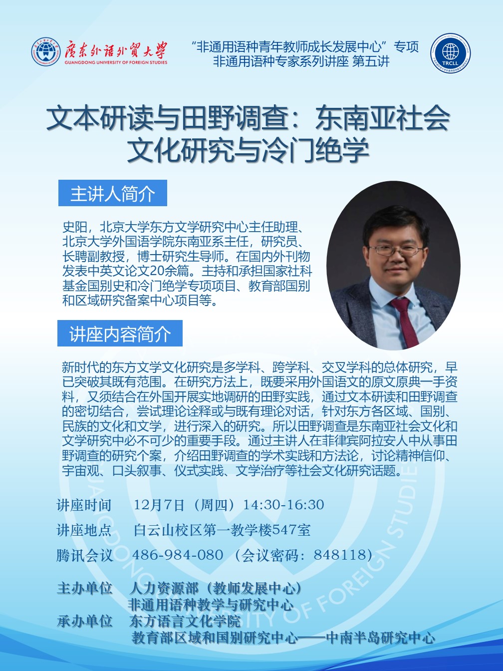 非通用語種專家系列講座第五講:文本研讀與田野調查:東南亞社會文化研究與冷門絕學