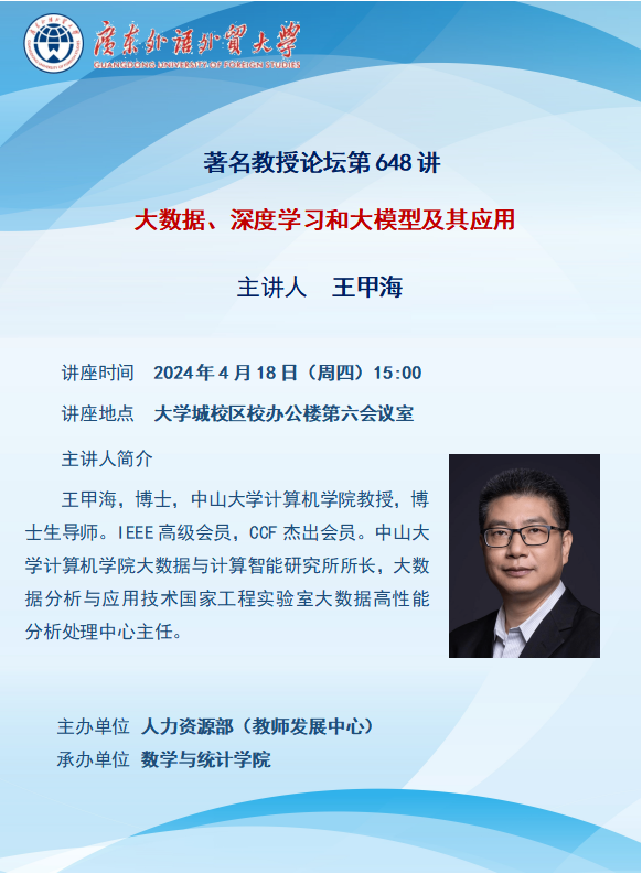 著名教授論壇第648講:大數據、深度學習和大模型及其應用