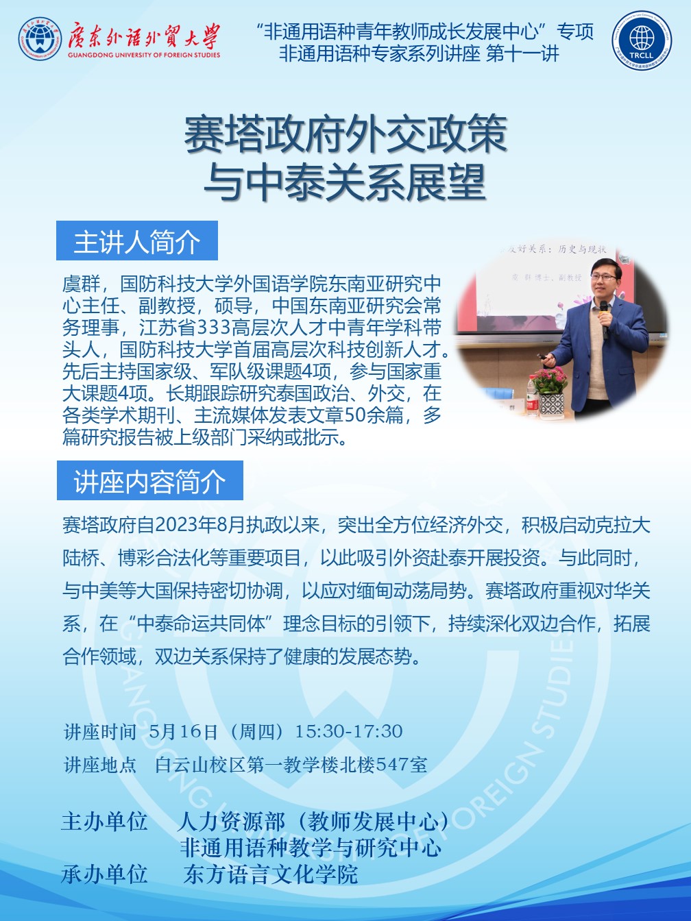非通用語(yǔ)種專家系列講座第十一講:賽塔政府外交政策與中泰關(guān)系展望