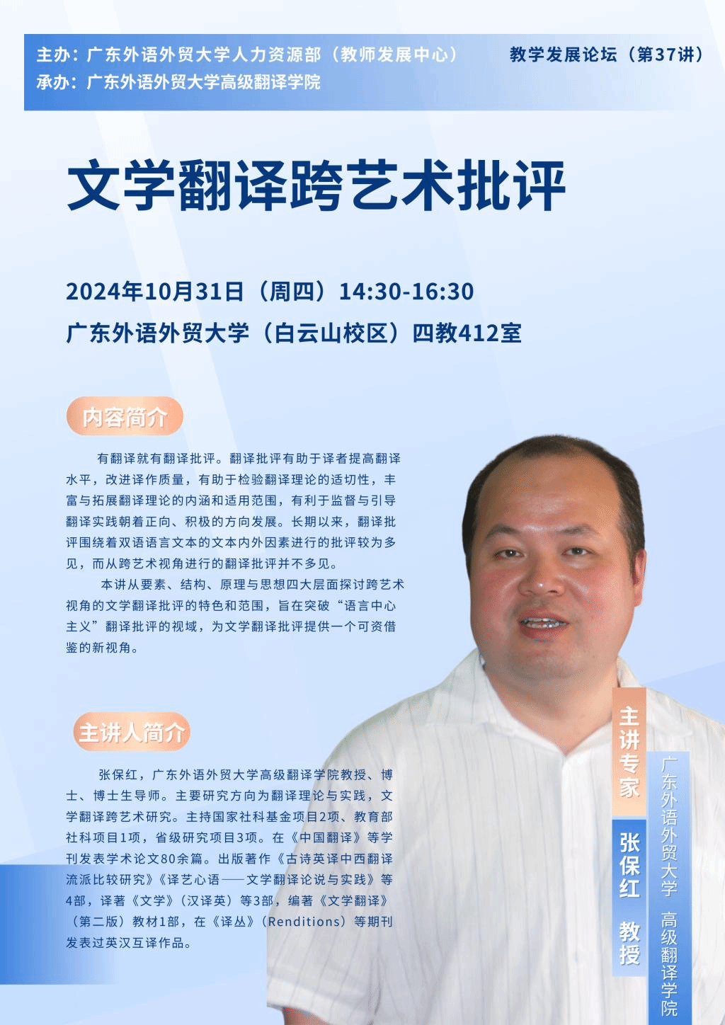 教學發(fā)展論壇第37講:文學翻譯跨藝術批評