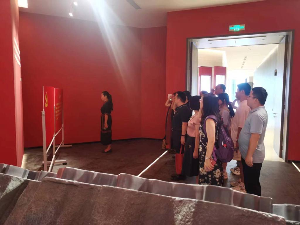 在館內,師生黨員面向鮮艷的中國共產黨黨旗,舉起右拳,重溫入黨誓詞。現場宣誓聲鏗鏘有力,久久回蕩。