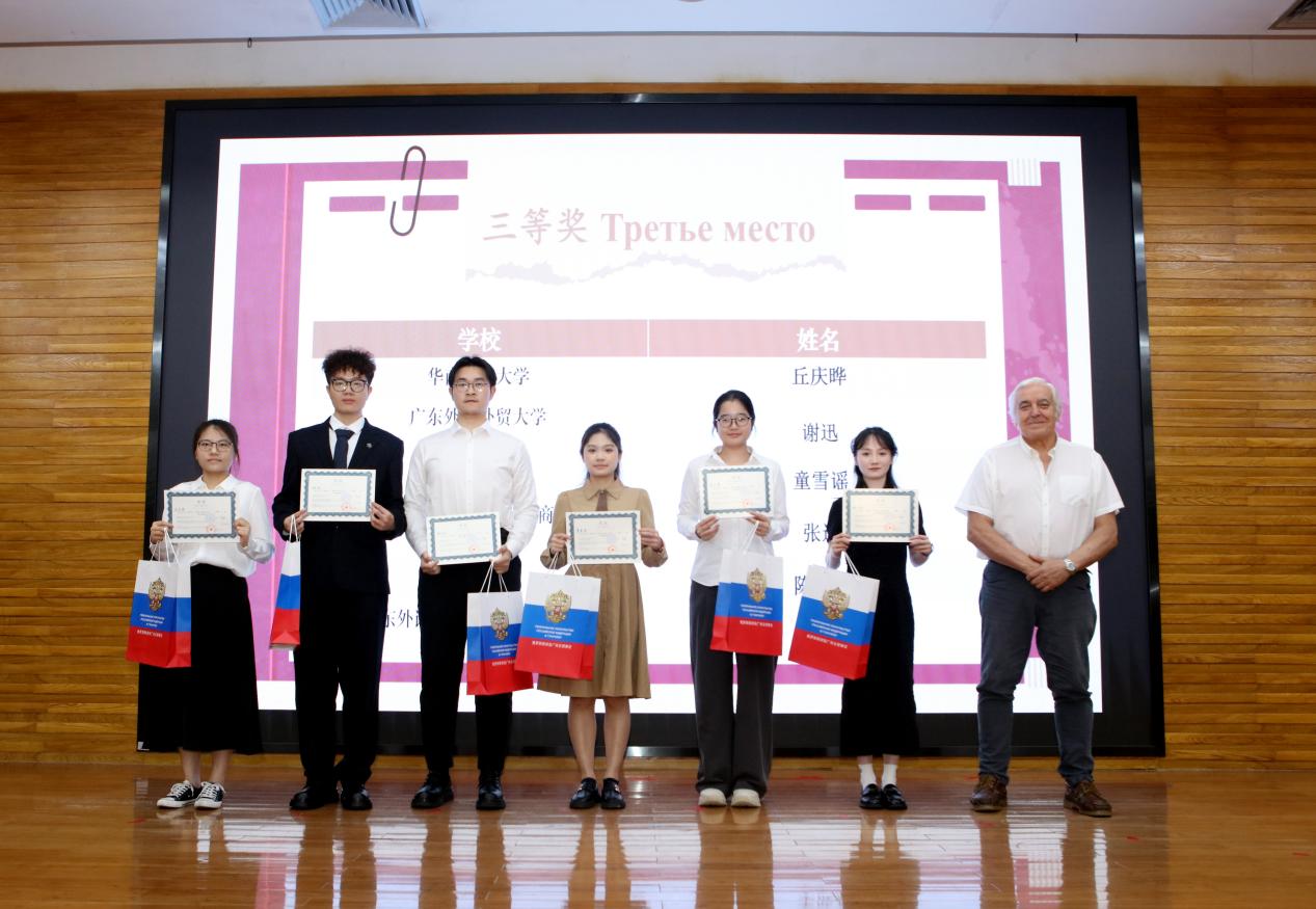 廣外俄語中心自2011年成立以來,長期致力于俄語推廣與俄羅斯文化傳播,已連續13年舉辦“俄語日”活動,為深化中俄青年交流和促進兩國民心相通發揮了積極作用。今年的“俄語日”活動以“慶祝中俄文化年”為主題舉辦俄語演講比賽,吸引了廣東外語外貿大學、中山大學、華南師范大學、深圳北理莫斯科大學及廣東外語外貿大學南國商學院等多所高校的師生踴躍參與。經過激烈角逐,深圳北理莫斯科大學學生張紀童和廣東外語外貿大學學生陳姿穎獲得一等獎。