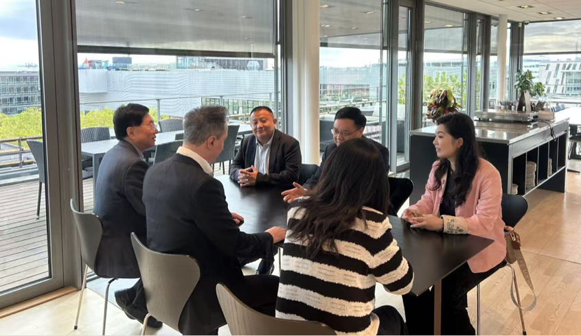 在拜訪丹麥科學與商業外交中心期間,石佑啟一行與該中心主任薩哈馬克·雷讓(Shahamak Rezaei)進行了座談。薩哈馬克·雷讓對廣外代表團的到訪表示熱烈歡迎,并介紹了中心的基本情況。他表示,丹麥科學與商業外交中心是丹麥政府支持的重要國際合作平臺,致力于通過科學、技術與商業合作推動外交關系與全球可持續發展。他誠摯邀請我校參與中心組織的各類高端學術論壇,并積極推動我校與丹麥高校及科研機構建立實質性合作關系。石佑啟對中心主任薩哈馬克·雷讓的熱情接待和誠摯邀請表示衷心感謝。他強調,我校高度重視與國(境)外高層次學術機構建立長期穩定的合作交流關系,期待借助丹麥科學與商業外交中心這一重要平臺,進一步對接丹麥乃至歐洲的優質科研資源與國際網絡,在數字治理、商業模式創新等前沿領域推動合作研究、人才交流與成果轉化,共同為可持續發展與全球治理注入新動能。