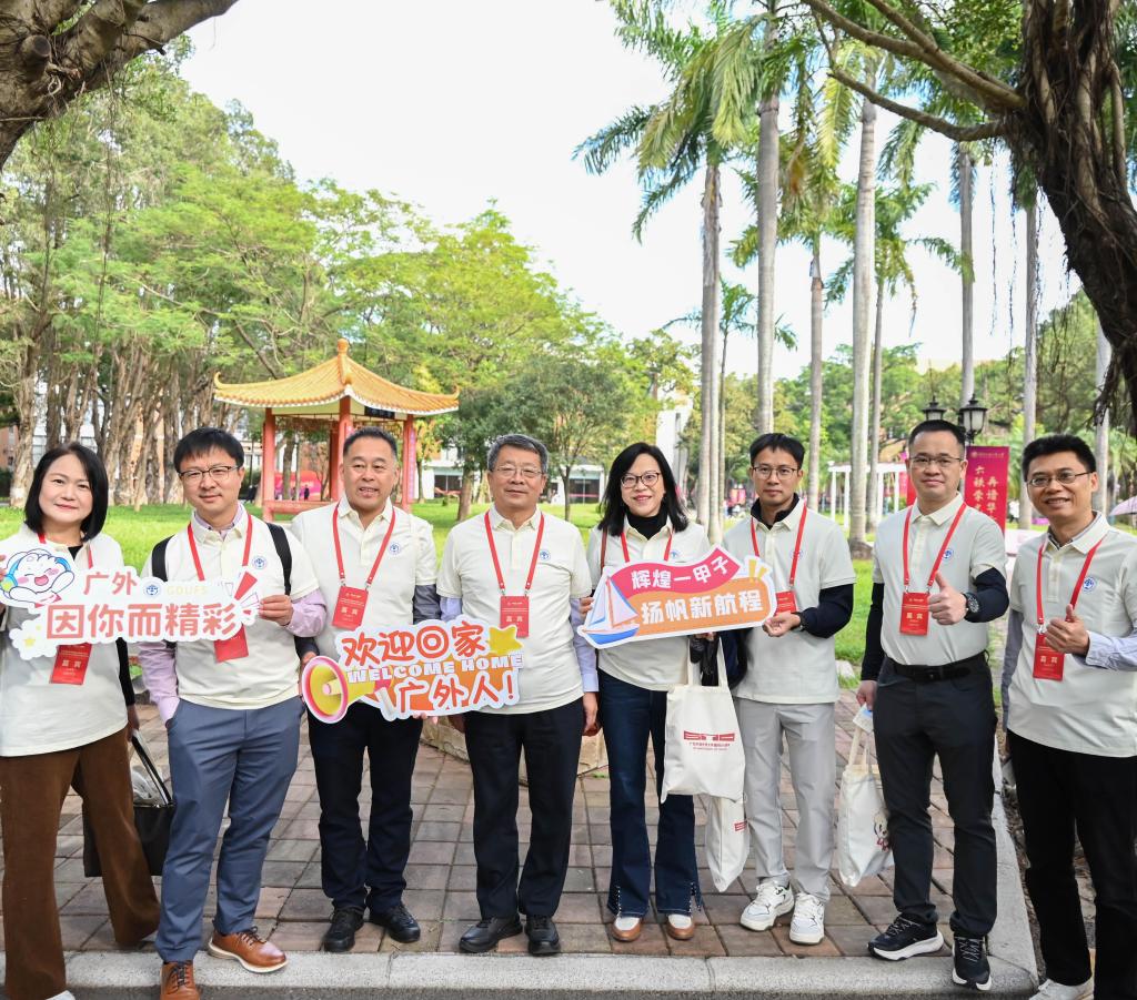 秋日的陽光為白云山校區(qū)披上暖意,校友們從世界各地歸來。或背著行囊,拎著拉桿箱踏上母校熟悉的校道;或攜家?guī)Ь欤械膸е暧椎淖优?,孩子手中揮舞著小小的校慶旗幟,有的小心翼翼地攙扶著年邁的父母,三代同堂。來自全球各地的校友共同奔赴這場名為“回家”的盛會,為廣東外語外貿(mào)大學(xué)的六十華誕獻上最深情的祝福。