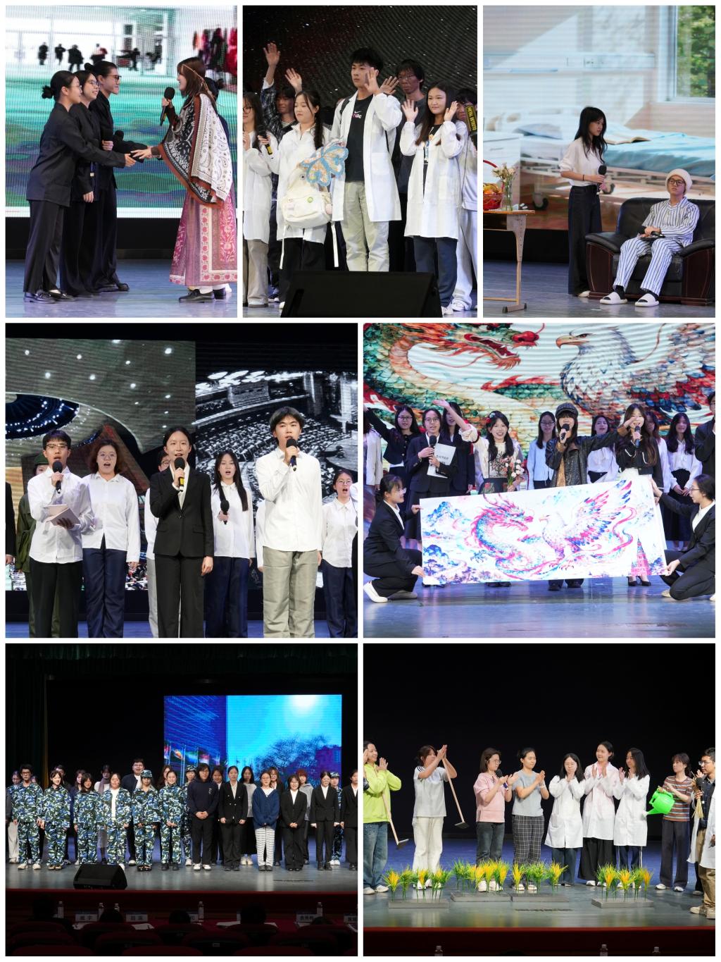 七支劇組圍繞聯合國的四大宗旨,重現聯合國八十年風雨兼程中的關鍵時刻。從1971年聯合國總部五星紅旗升起的晨曦,到2001年波恩會議室內締造和平的燭光;從烏干達稻浪間躍動的金色希望,到聯合國教科文組織舞臺上文明交融的華彩樂章;從黃華路油印機流轉的煤油馨香,到日內瓦萬國宮六語同傳的科技光芒;再到全球抗疫中跨越疆界的生命防線,在歷史與現實的共鳴中,在東方與西方的對話里,一幕幕精彩演繹跨越時空、直抵人心,區域國別學子用“紅色演繹”串聯起中國與世界各國攜手共進的璀璨星河,展現青年與“紅色之路”的使命共振。